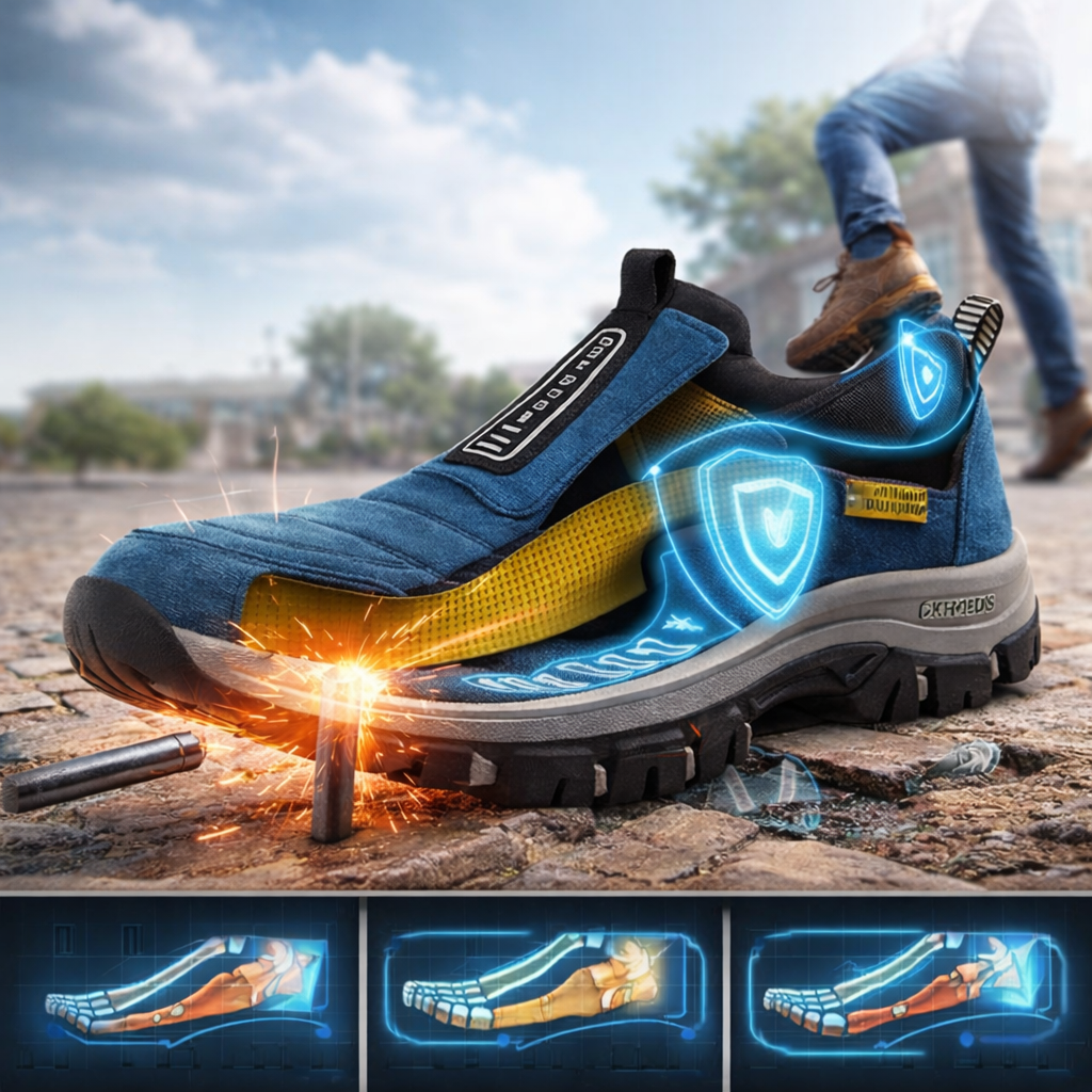 Ostruge in stresni zlomi se pogosto pojavijo, ko jih najmanj pričakujete, na primer, če stopite na oster predmet na vrtu ali na neravnem pločniku. Čevlji Lunmens imajo podlogo Kevlar® (istega materiala, ki se uporablja v neprebojnih jopičih), ki deluje kot »zaščita pred tveganjem«, ki jo nadzoruje umetna inteligenca: